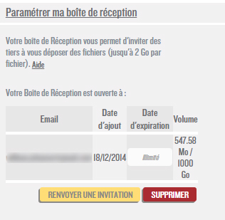 Envíe invitaciones de almacenamiento a sus contactos desde el apartado Bandeja de recepción de su cuenta weSend. Recibirán en su bandeja de correo electrónico un enlace que les permitirá enviarle sus archivos pesados de forma sencilla.